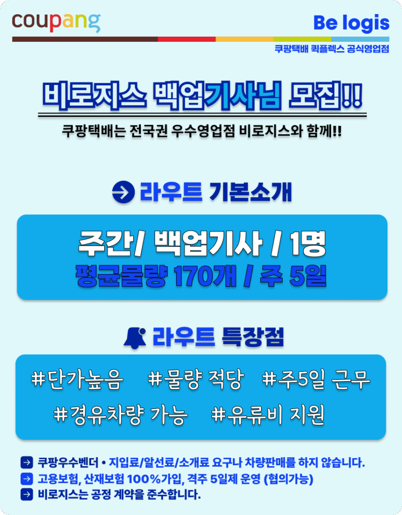 [비로지스] 쿠팡택배 퀵플렉스 경북 봉화군 백업기사님 모집