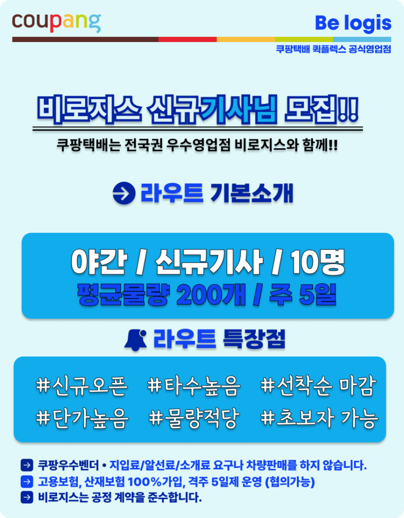 [비로지스] 쿠팡택배 퀵플렉스 춘천야간캠프 오픈! / 선착순 배송기사 모집!