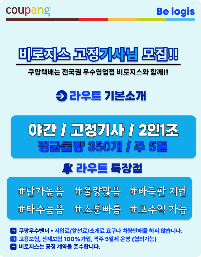 [비로지스] 쿠팡택배 퀵플렉스 망우동 배송기사님 모집